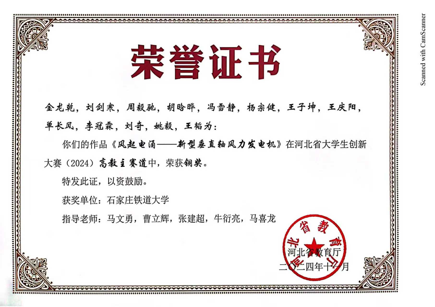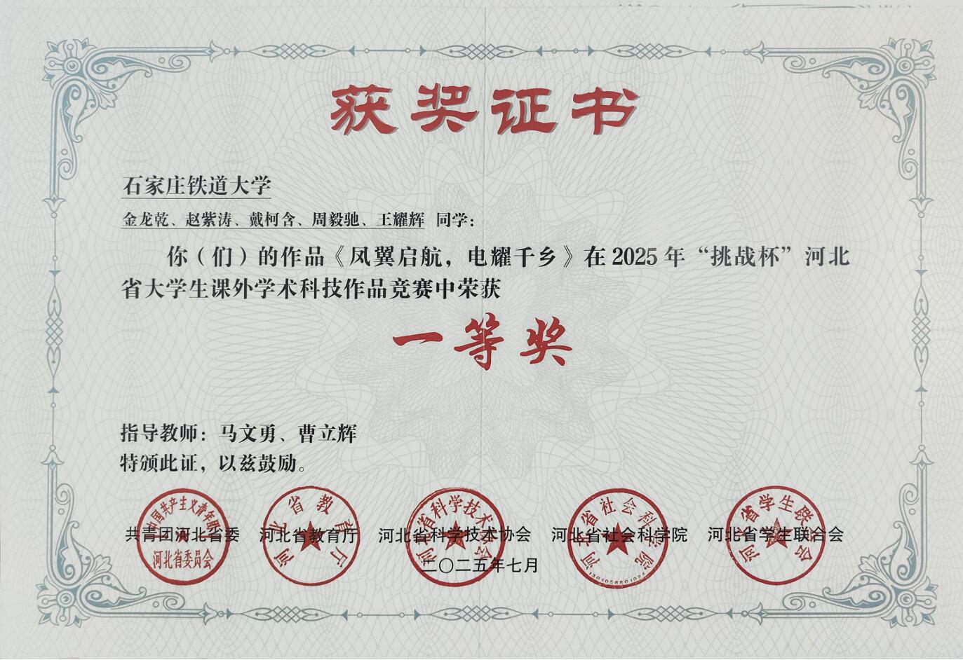 一等奖 2025年“挑战杯”河北省大学生课外学术科技作品