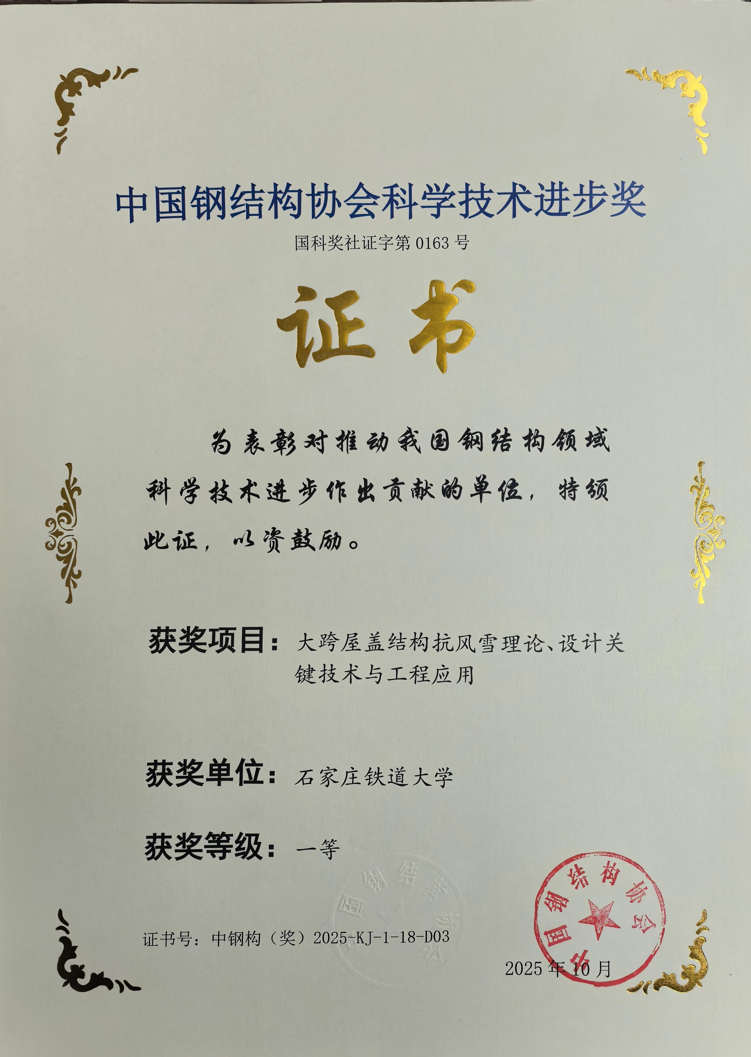 近日,课题组参与的风吹雪研究项目《大跨屋盖结构抗风雪理论、设计关键技术与工程应用》荣获中国钢结构协会科学技术进步奖一等奖。该项目针对大跨度屋盖结构在风雪环境下的抗灾能力,提出了新的抗风雪理论与关键技术,尤其在防止风吹雪导致积雪堆积方面取得了重要进展。研究通过实际工程数据与数值模拟,改进了大跨度结构的设计方法,显著提升了抗风雪性能,并为相关工程应用提供了科学依据。